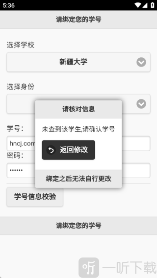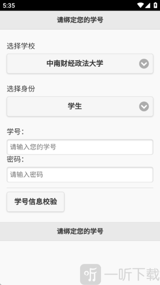 点击“学号信息校验”,校验通过后点击【绑定】(绑定操作完成后无法再进行修改)