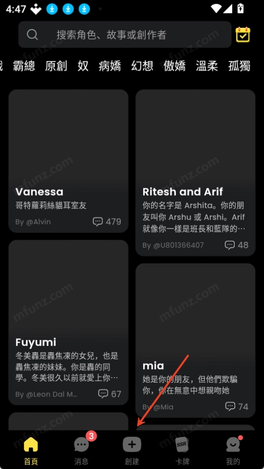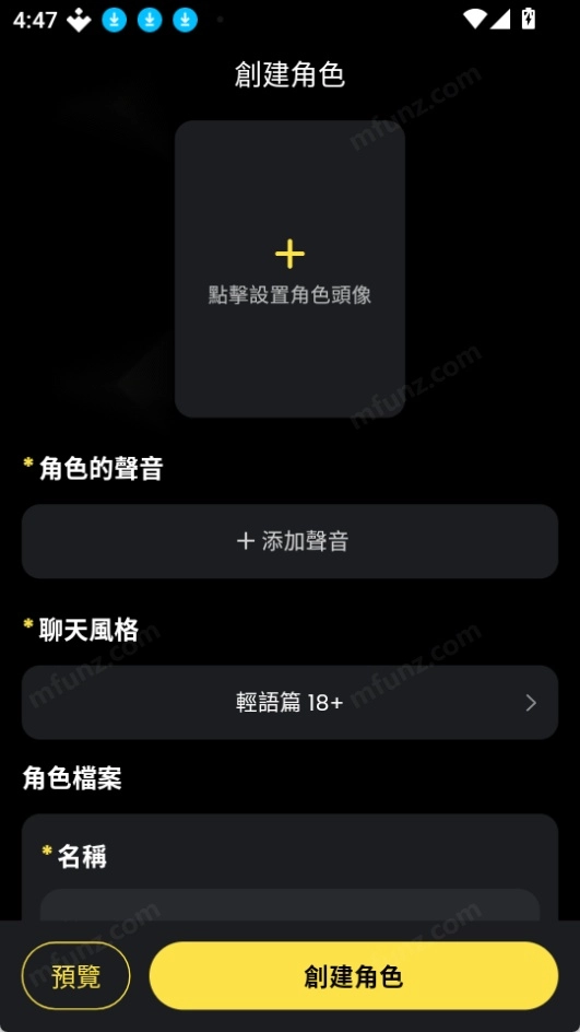 打开 TiKie,点击底部+号创建角色。