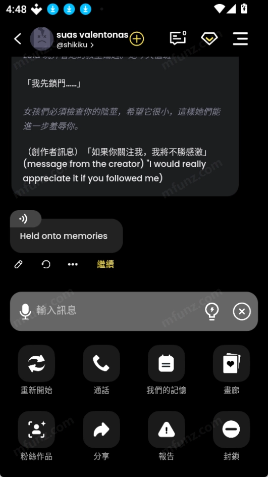 tikie提供角色、故事和创作者的搜索功能,还会展示每日热门角色,对懒人用户十分友好,另外也有浪漫故事可供大家在闲暇时浏览。在tikie的聊天过程里,除了文字输入外,还能使用语音输入,或者直接选用AI生成的灵感回复。