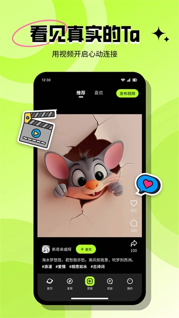1、全新上线「觅视」板块,用视频发现真实社交瞬间