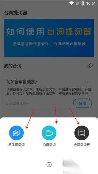 1、悬浮提词:支持边播放边查看台词,通过悬浮窗智能拍摄,无需多台手机辅助提词。