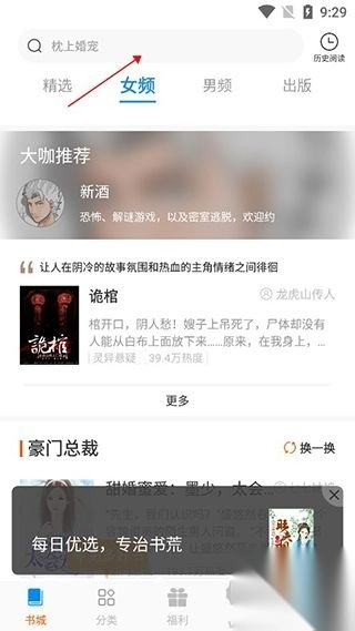 2、查找书籍:进入主界面,点击书城顶部的搜索框