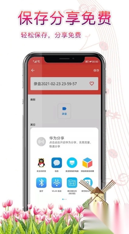- 通过电子邮件,短信,移动电话,保管箱等发送/分享录音。