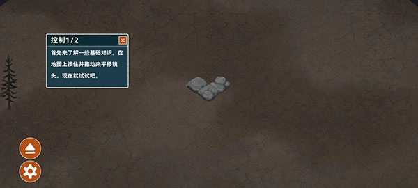 3、然后你会获得一小荒地,左上角会有提示,拖动可以切换视角,双指收缩可以放大缩小。