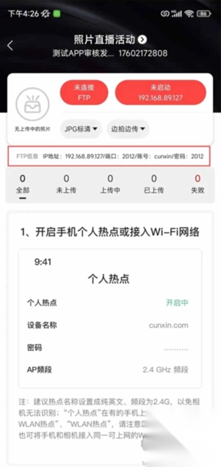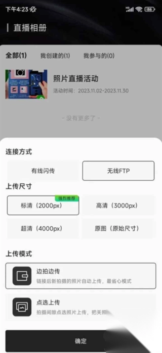 2. 挑选无线FTP连接模式,确认之后,进入上传页面。