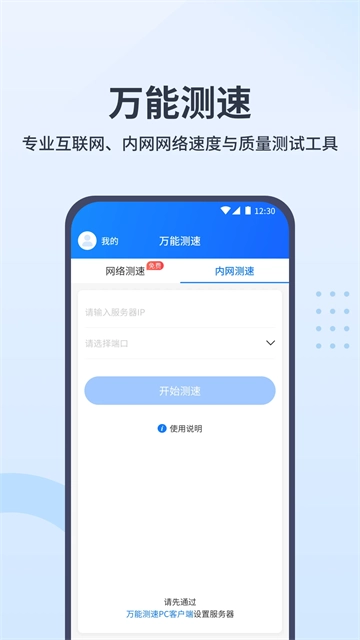 万能测速:一款专注于互联网及内网网络速度与质量检测的专业工具。