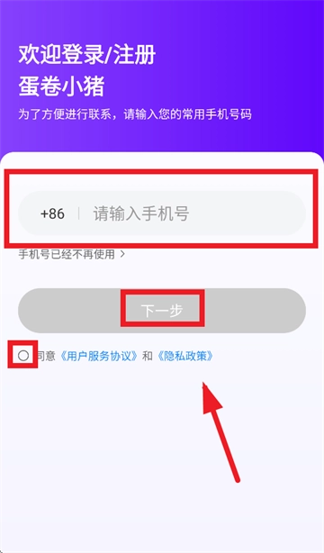 当您进入登录界面,在相应位置输入手机号,同时勾选表示同意《用户服务协议》以及《隐私政策》,随后点击“下一步”获取验证码,完成此操作后就能登录。