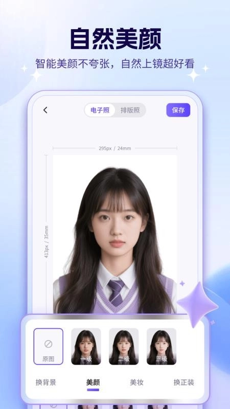 在此,为用户贴心准备了线上高清美颜功能,助力用户轻松打造精美证件照,达成智能美颜效果。