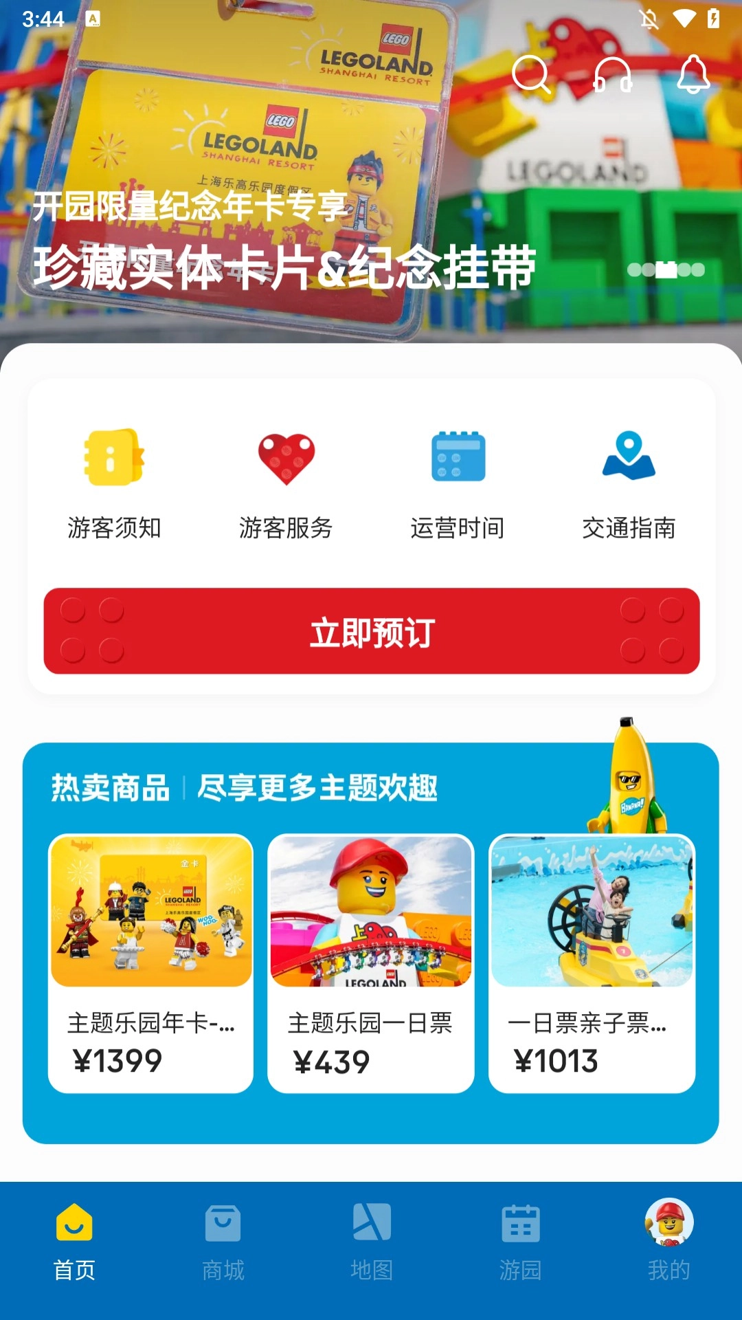 1. 开启软件,进入主页。在此页面,既能预订门票,又能查看乐园资讯。