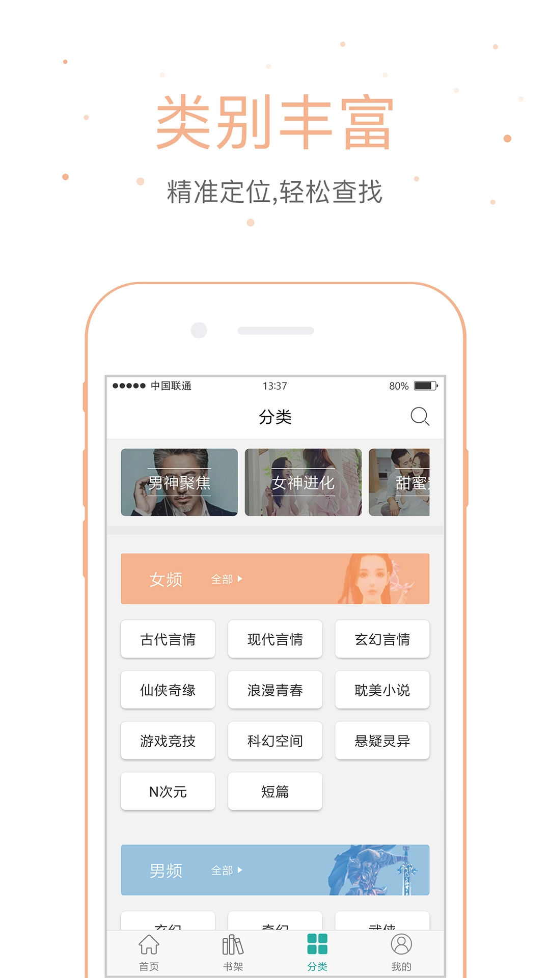 1、你能轻松找到并定位心仪的小说,借助简洁明了的分类标签,就能快速锁定想读的小说。
