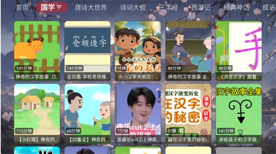 3、顶部栏包含丰富的学习资源,涵盖国学、唐诗大世界、三字经等多种类型。