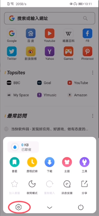 1、于本站成功安装uc浏览器后,点击应用底部的菜单按键。