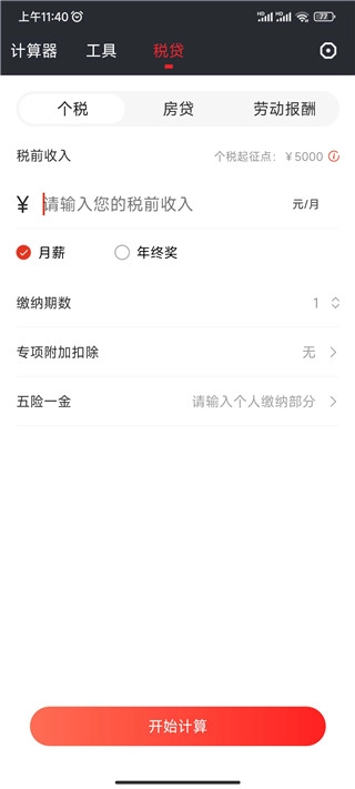 4、在此,你还能够进行个税、房贷以及劳动报酬的计算。