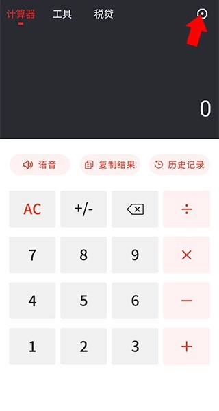 1、在本站、安装并打开全语音计算器,之后点击右上角的齿轮按钮