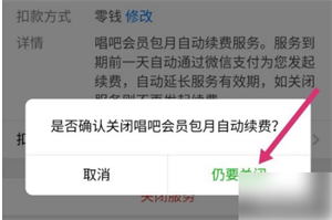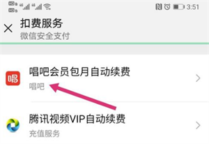 进入扣费服务后,点击唱吧会员包月自动续费。