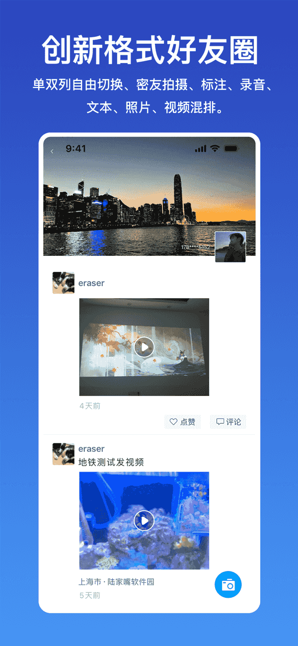 你可以在朋友圈分享生活里的新鲜事,发布每日动态,拉近彼此的距离。