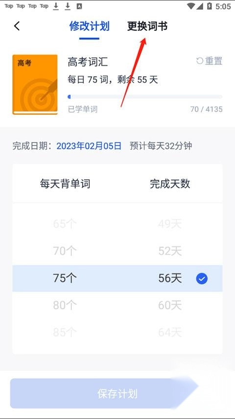 选择好单词数量之后点击保存计划就好了