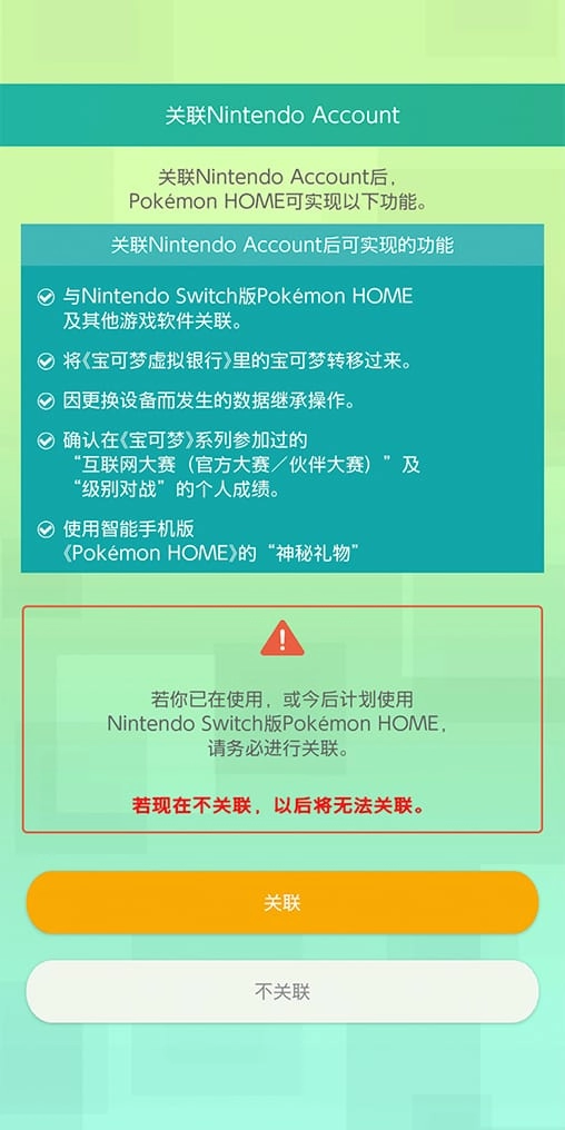 ※使用智能手机版《Pokémon HOME》时,若未先关联Nintendo Account就直接开始使用,后续将无法再关联该账号。