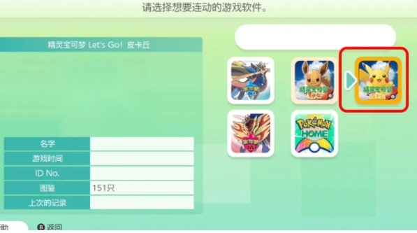 首先在主界面找到宝可梦选项并点击,接着选择“连动精灵宝可梦:Let's Go”这一功能,随后即可进入宝可梦盒子界面。