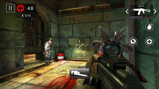 屏幕左半部分为角色移动区域,右半部分则是视角控制区域,相较于《死亡扳机1》,其操作灵敏度有了明显提升。