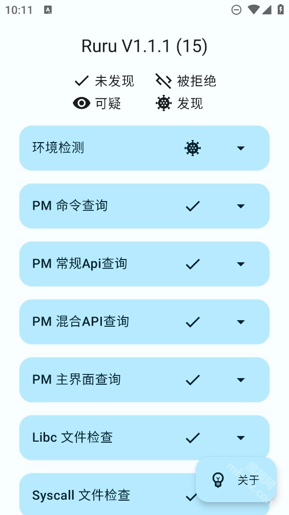 ruru环境检测是一款功能相当全面的安卓系统检测工具。不少朋友都格外青睐用这款ruru环境检测来查看手机的各类功能与硬件信息,像环境监测、PM命令查询、Libc文件检查等都包含在内。这款ruru环境检测的新版本操作方式非常简便,就算是新手也能很快上手!