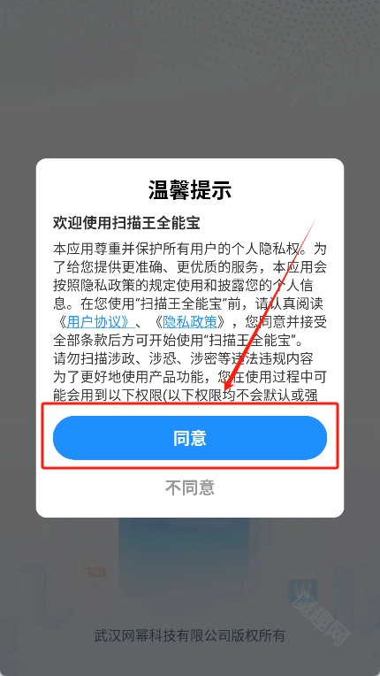 首先前往魔趣网,找到并安装扫描王全能宝应用;打开该应用后,选择“同意”选项,即可进入软件界面。