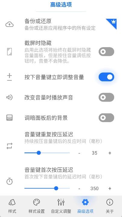 Volume Styles是一款能自定义音量控制样式的系统美化软件,它允许我们对手机音量控制面板的外观和样式进行个性化设置,包括选择不同的主题、颜色、图标和布局。目前提供的样式覆盖了安卓10、iOS 13、MIUI等多种系统,选定基础样式后,还能进一步调整颜色、位置和显示时长等细节,个性化程度很高。另外,我们还可以添加一些快捷开关,或者调整音量滑块的数量。
