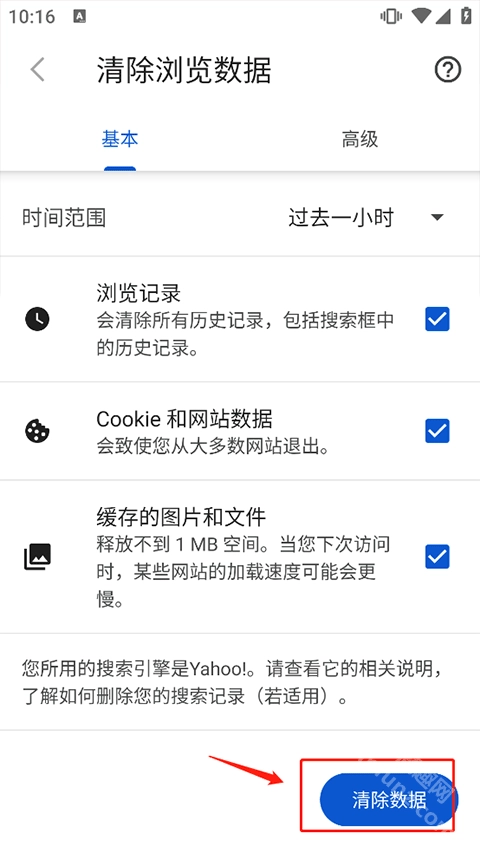 接下来,依次在基础设置页面与高级设置页面里勾选想要清理的数据项,最后点击“清除数据”按钮,就能完成整个操作流程。
