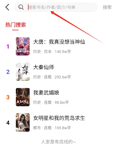 查找小说:在搜索框里利用书名、作者名这类关键词来查找自己想阅读的小说。