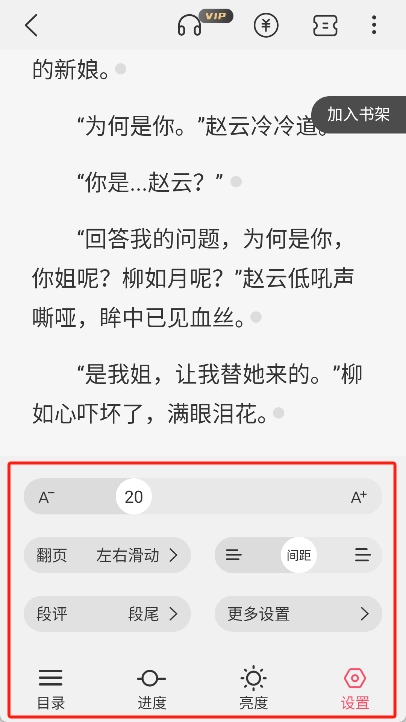 在阅读时,你可以对字体大小、背景颜色、亮度等阅读相关的设置进行调整。