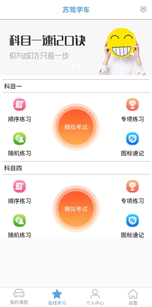 苏驾学车最新版本支持在线练题功能,涵盖了从科目一到科目四的模拟考试练习专区,能助力您高效开展驾考模拟练习,有需求的朋友们不妨来体验一番!